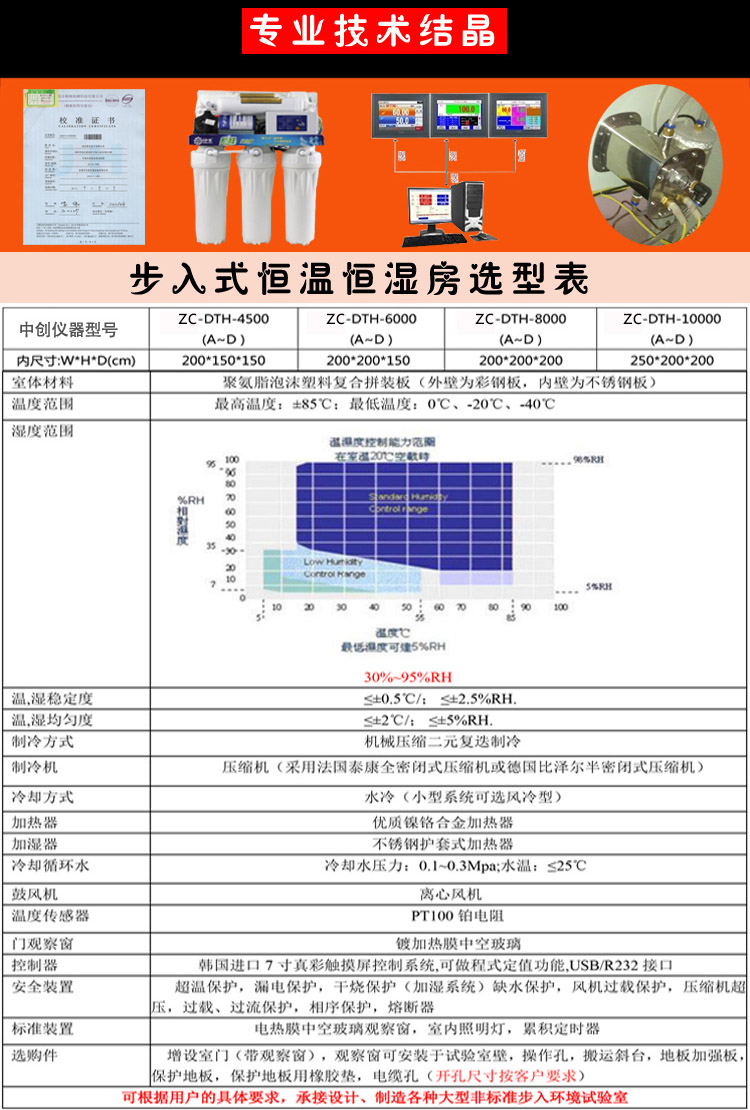 4,采用智能型自動轉換膨脹系統,根據負載自動調整冷媒流量+智能型電熱功率數據值(%)匹配升降溫(負載)自動模擬輸出功率數據輸出值.此設計比傳統設計更加省電。