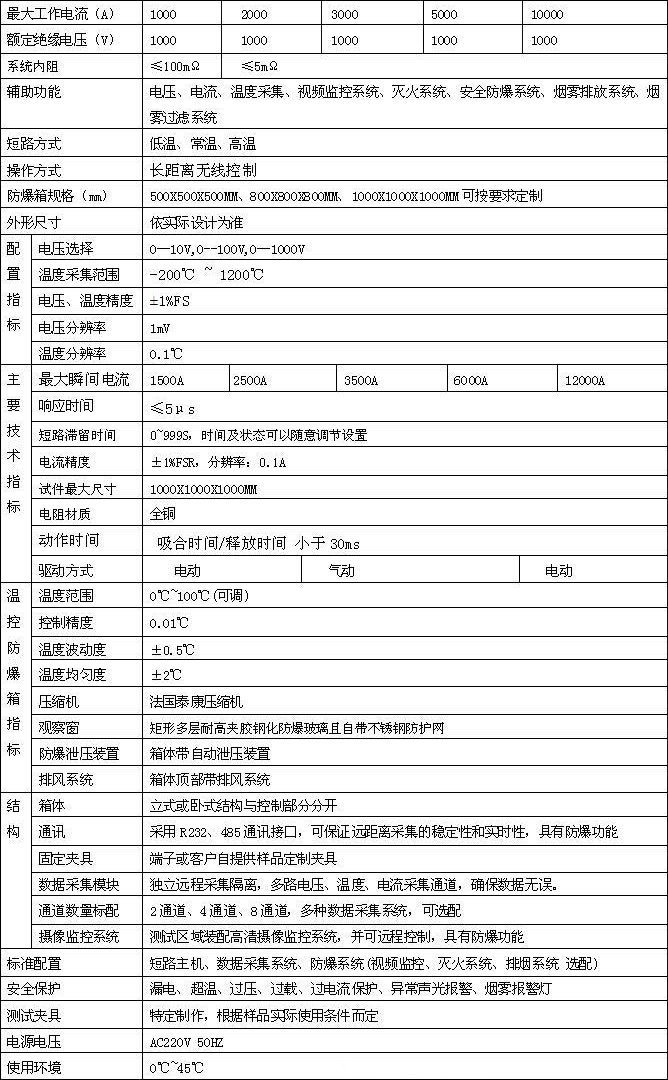 遙控大電流短路裝置綜合多種電池短路試驗標(biāo)準(zhǔn)要求而設(shè)計按標(biāo)準(zhǔn)要求短路裝置必須符合內(nèi)阻范圍遠(yuǎn)小于100mΩ,從而獲得試驗要求的最大短路電流。